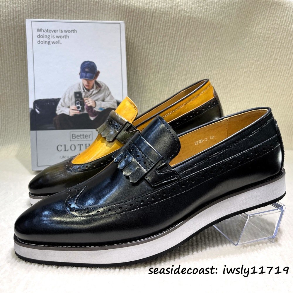 超希少■スニーカー メンズ 高級牛革 ローファー 職人手作り 彫り 紳士靴 革靴 ビジネスシューズ 本革 超軽量 スリッポン ブラック 26.0cm