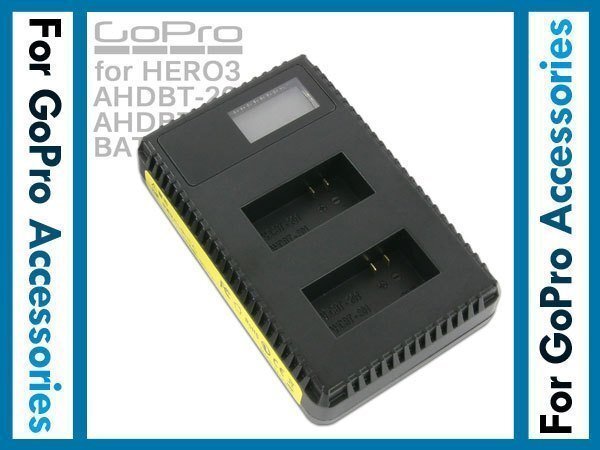 GoPro HERO3 HERO3+用 USB デュアルチャージャー バッテリー充電器 互換 AHDBT-201 AHDBT-301/302 充電池 ディスプレイ内蔵