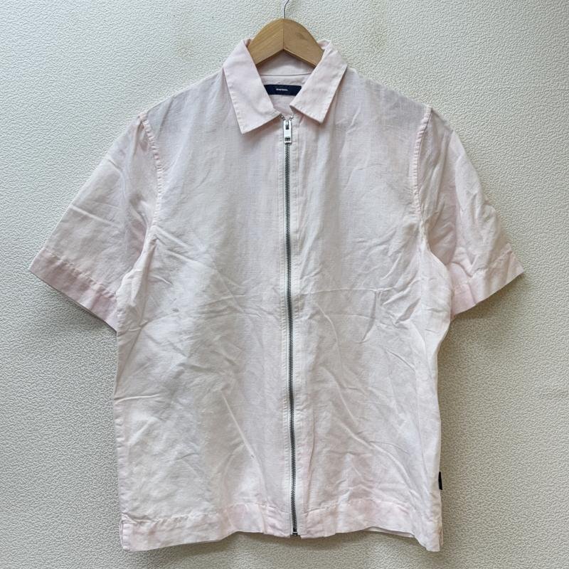 ディーゼル コットン リネン フルジップ 半袖シャツ 薄桃色 ピンク S