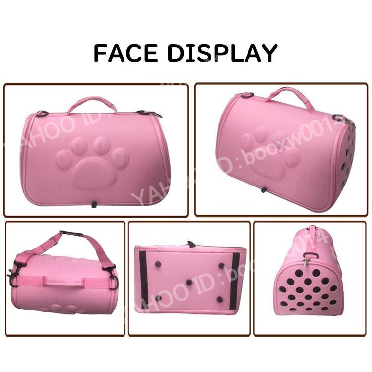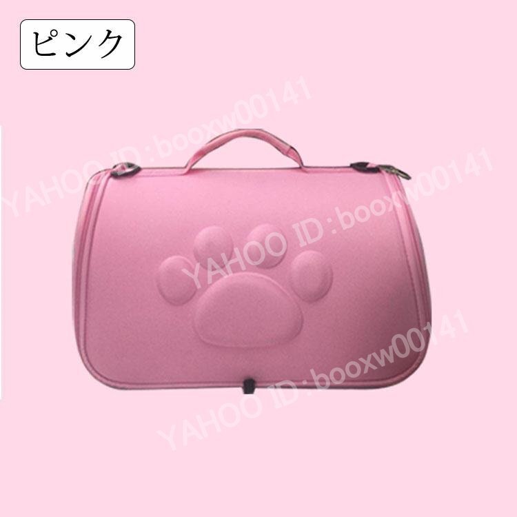 ペットキャリーバッグ ショルダーバッグ 携帯に便利 猫 犬 2WAY 折畳式 コンパクト 肉球マーク 手提げ 洗える 両面開き ピンク hhw0013.1