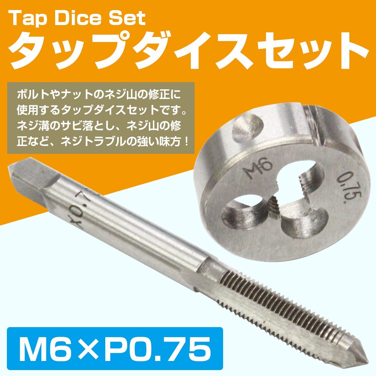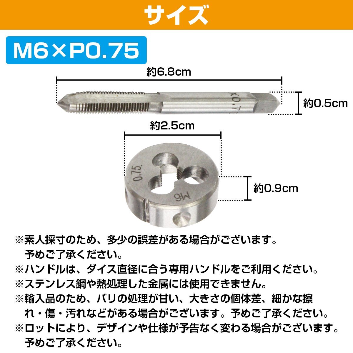 『M6×P0.75』タップダイス セット 目立て ネジ 山 修正 めねじ 再生 ねじ 穴 修復 補強 耐久性向上 雌ネジ 補修 工具 キット