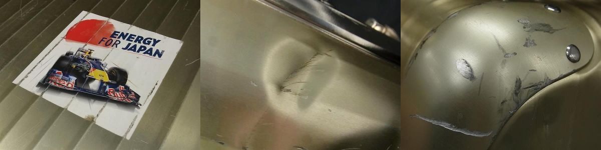 へこみ 傷 テープ付着 キャスター欠損 粉吹き 割れ 剥がれ
