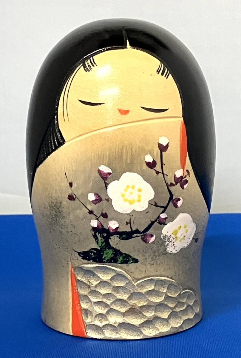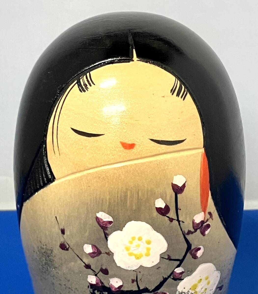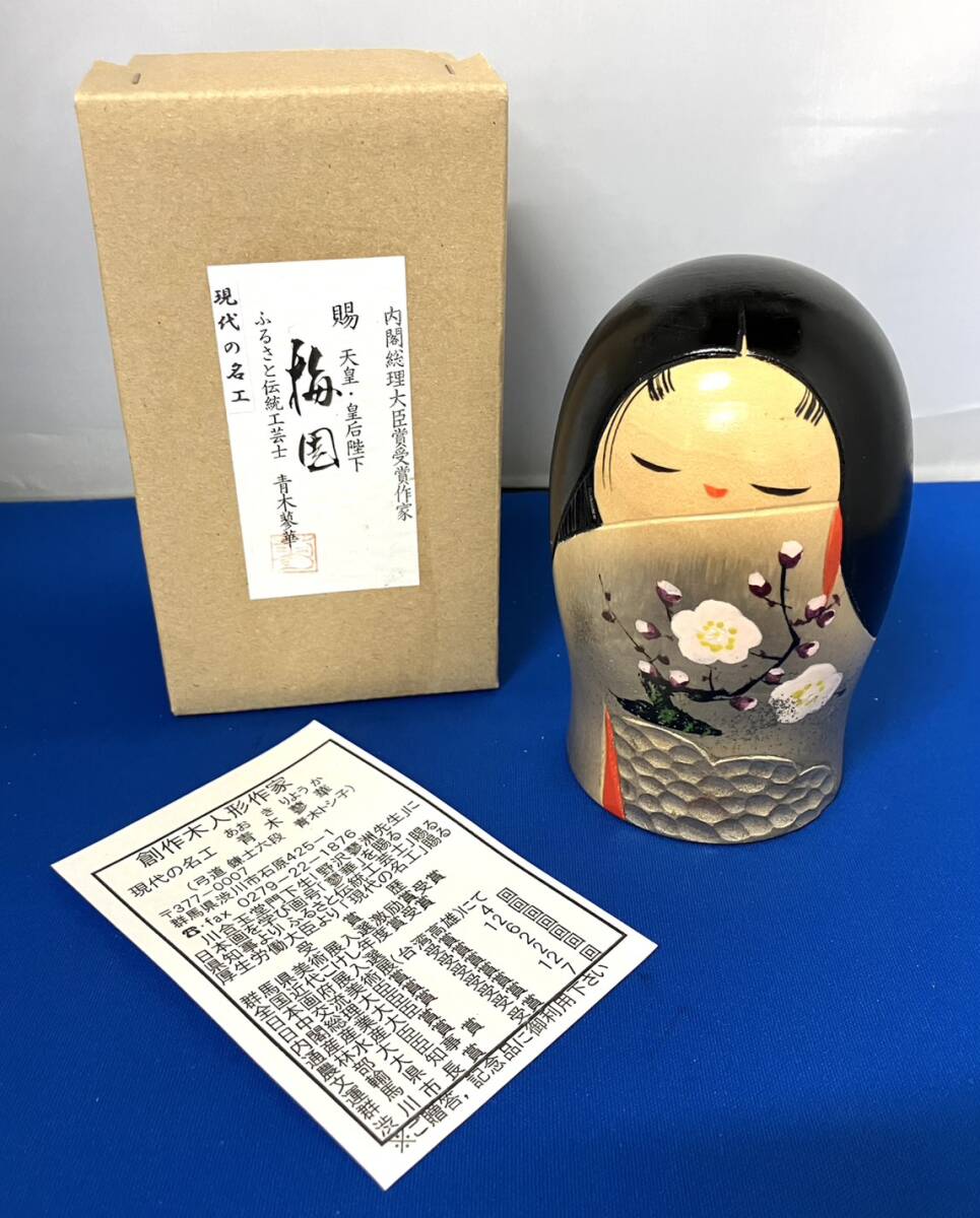 〈インテリア〉こけし 内閣総理大臣賞 青木蓼華 梅園 高約11.5cm 置物 工芸品 郷土 伝統 レトロ【中古/現状品/未使用品】004514-132