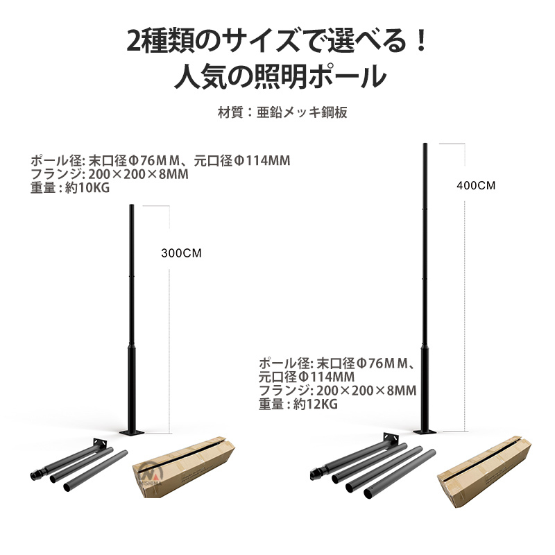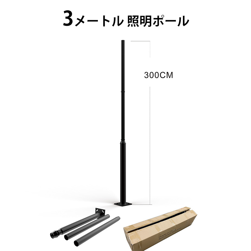 msm-Pole300 照明ポール 3m 組立式 ポール ガーデンライト ソーラー街灯用 ポール 屋外 おしゃれ 外灯 街灯 高さ3m 亜鉛メッキ ベース式