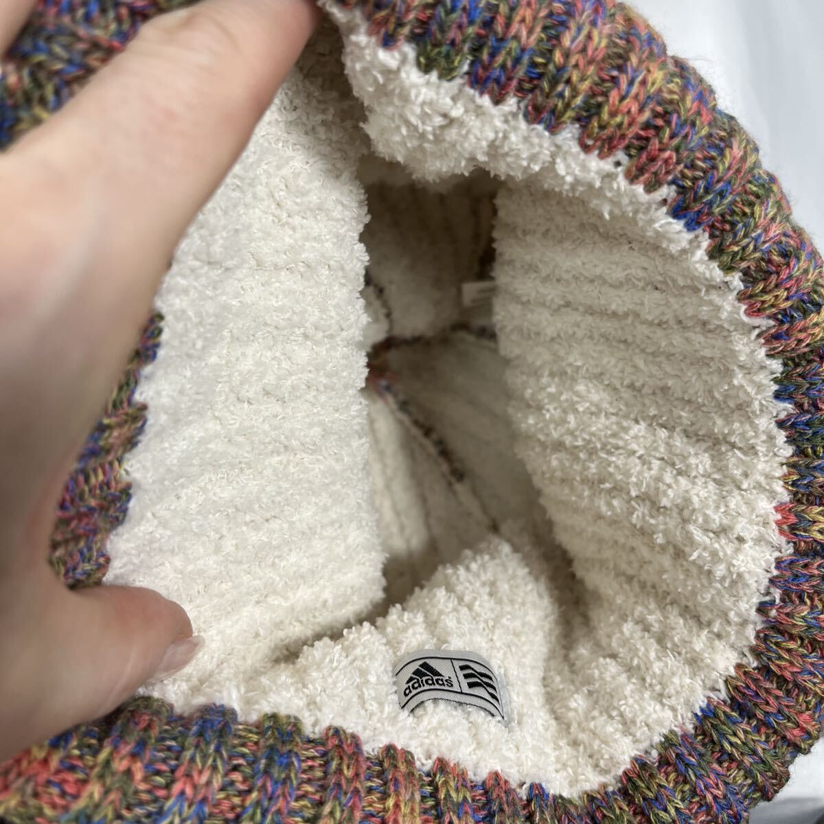 【人気】 adidas アデイダス ①ポンポン付きニット帽 マルチカラー ②レッグウォーマーになります()