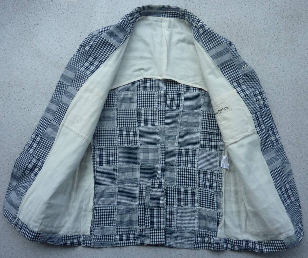 綿100%の各種ネービーチェック生地をクレージーパターンに配し、3Bジャケットに仕立てたものです。