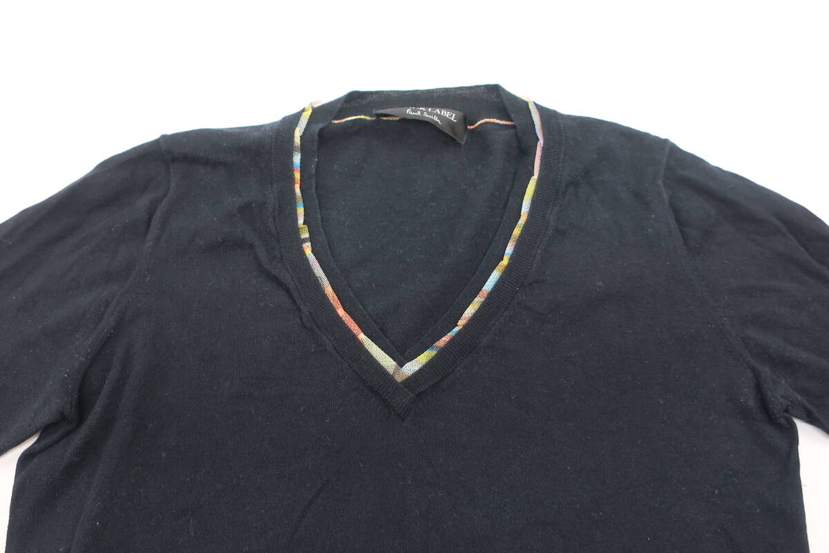 【送900円】1593 BLACK LABEL Paul Smith ブラックレーベル ポールスミス Vネックニットトップス セーター 薄手 綿×レーヨン×毛 L