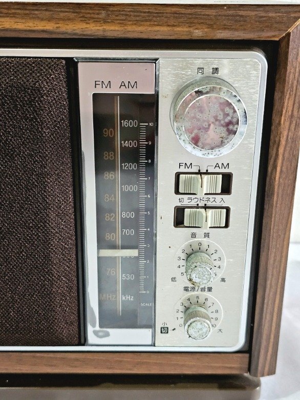 商品説明 高級感ある木製キャビネットのFM/AM 2バンドホームラジオです。 大口径16cmスピーカーが採用され、小音量時に音質補正するラウドネススイッチが搭載されています。 詳細 ●サイズ:奥行13.5cm、幅33cm、高さ23cm ●素 材:木製 ●動 作:動作確認済み ●ランク:ヴィンテージランク ●コンディション:上部や側面・裏側に傷、汚れがあります。 つまみにサビ付きがあります。 ヴィンテージ品のため、現状でのお渡しとなります。 |