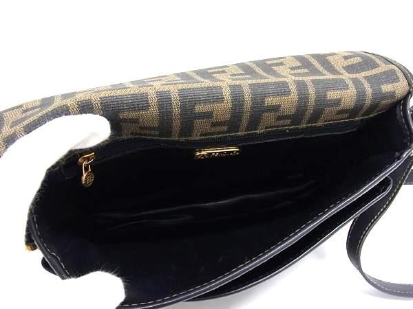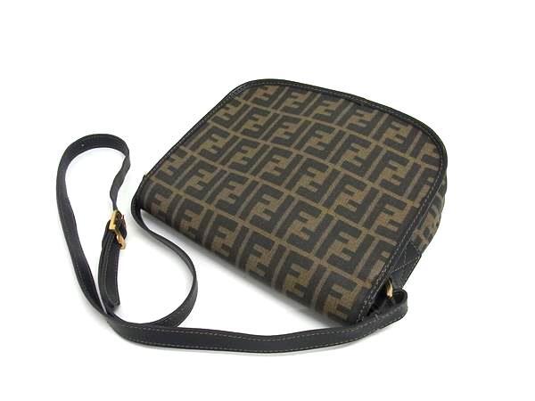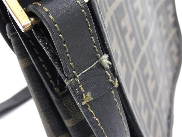 1円 FENDI フェンディ ズッカ柄 ヴィンテージ PVC×レザー クロスボディ ショルダーバッグ 斜め掛け 肩掛けかばん ブラウン系 FS0780