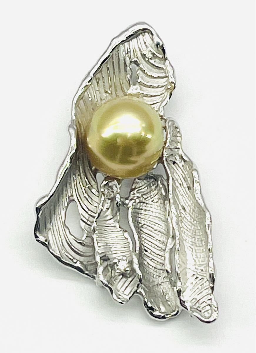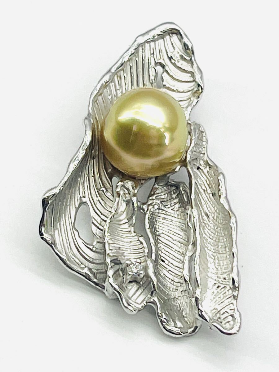 ◎1円◎ 白蝶真珠 SV925 0.02メレダイヤ付 ペンダントトップ パール アクセサリーゴールドパール 真珠 約10ミリ玉★同梱不可co