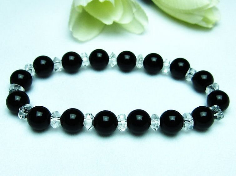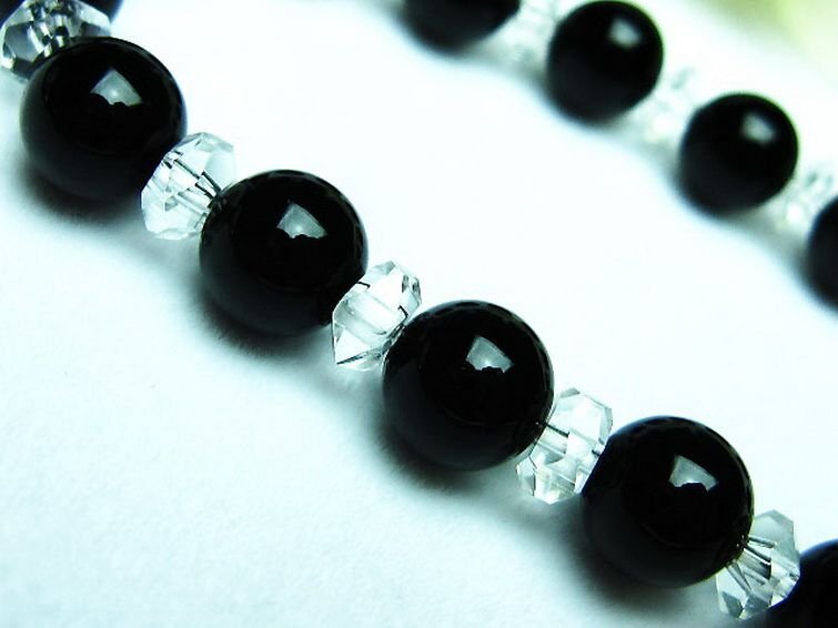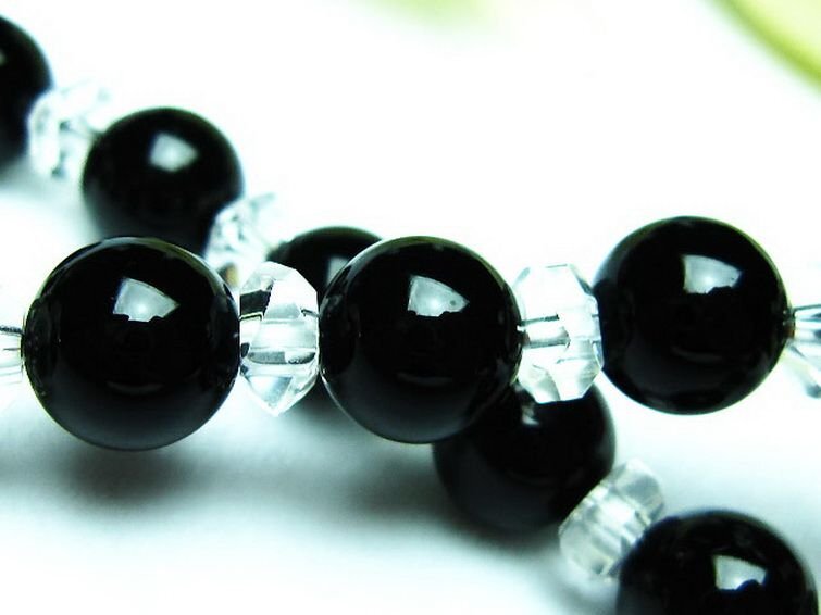 ■商品名: オニキスブレスレット ■商品ID: T233-863 ■商品重量:約 14g ■商品サイズ:内周約:150mm(±5mm)粒直径約:8mm(±0.5mm) 【オニキス(黒瑪瑙)】 オニキスは和名で黒瑪瑙(くろめのう)といい、その名の通り真っ黒なアゲートです。 もともとは黒地に白色の爪の筋目のように見える縞模様を持つアゲートのことを指していたようですが、徐々に漆黒のアゲートのことをオニキスと呼ぶようになりました。 オニキスは強力な魔除けのエネルギーを持つことから「縁切りの石」とも呼ばれており、悪縁を断ちトラブルから持ち主を守る石として知られています。 また自制心や忍耐力を高め、成功や目標達成のサポートをしてくれる働きも期待できます。 恋愛や人間関係でのトラブルに悩まされている方には正しい判断力をもたらし悪縁を断ち切ってくれるでしょう。 また、運動機能を高め努力の継続を促してくれるのでスポーツ選手の方やダイエットを成功させたい方にも心強いサポートが得られそうです。 ⇒ オニキスをもっと詳しく ◆ワンポイント情報 オニキスで天然で真っ黒なものは採掘量が限りなく少なく、市場に出回っているオニキスのほとんどが染色加工を施されたものです。 アゲートの仲間は染色されることによってさらにパワーが増すといわれているので効果の面で問題はないのですが、水分で色落ちしてしまう恐れがありますので流水での浄化は避けて下さい。 |