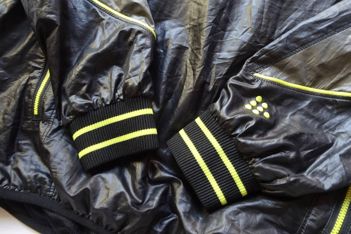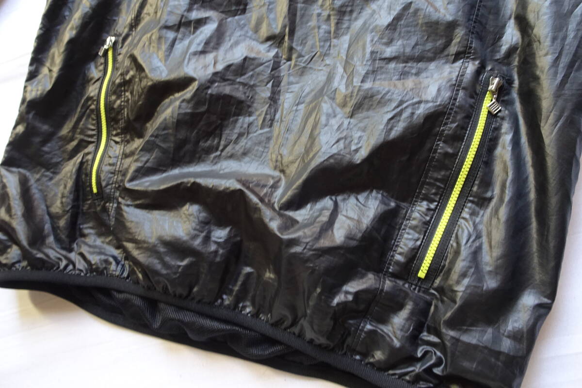 首ぐり、、袖口、黄ライン入りリブ素材です。