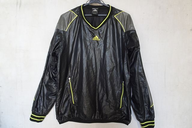 adidas/アディダス/長袖プルオーバー/表地ナイロン系ポリエステル/裏地メッシュ/Vネック/バックロゴ/黒/ブラック/Lサイズ(10/2R7)