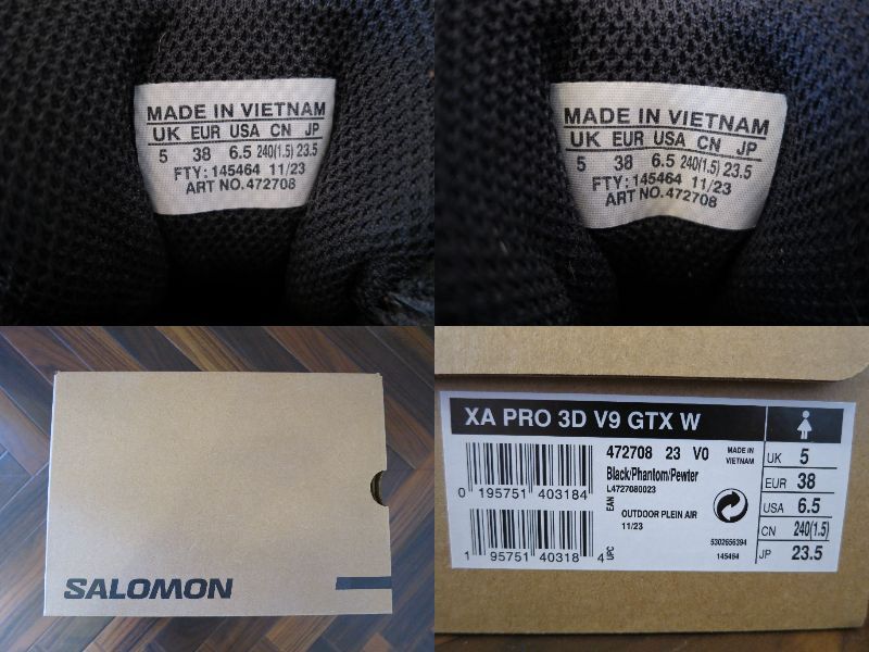 SALOMON(サロモン) XA PRO 3D V9 GORE-TEX Black/Phantom/Pewter 23.5㎝ ウィメンズ 箱あり