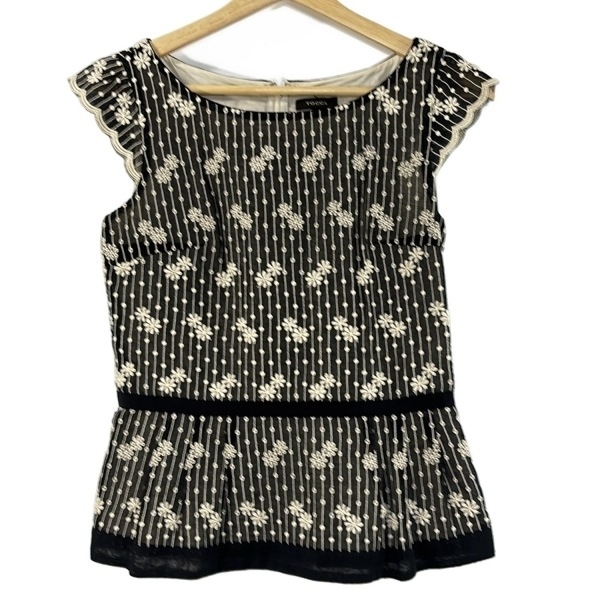 トッカ TOCCA 半袖カットソー サイズ0 XS - 黒×ライトベージュ レディース レース/刺繍/花柄/シースルー 美品 トップス