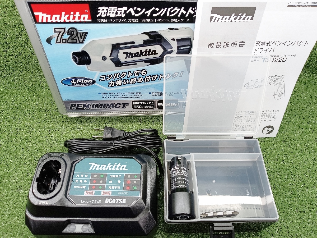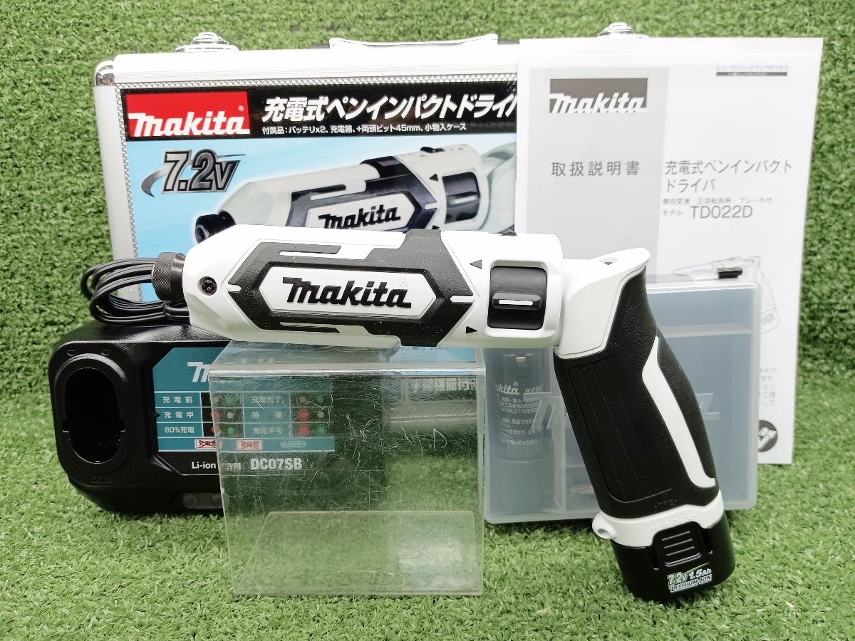 【 未使用 makita マキタ 7.2V 充電式 ペン型インパクトドライバ ホワイト 白 1.5Ahバッテリー 2個 充電器 付 TD022DSHXW ① 】 | |
