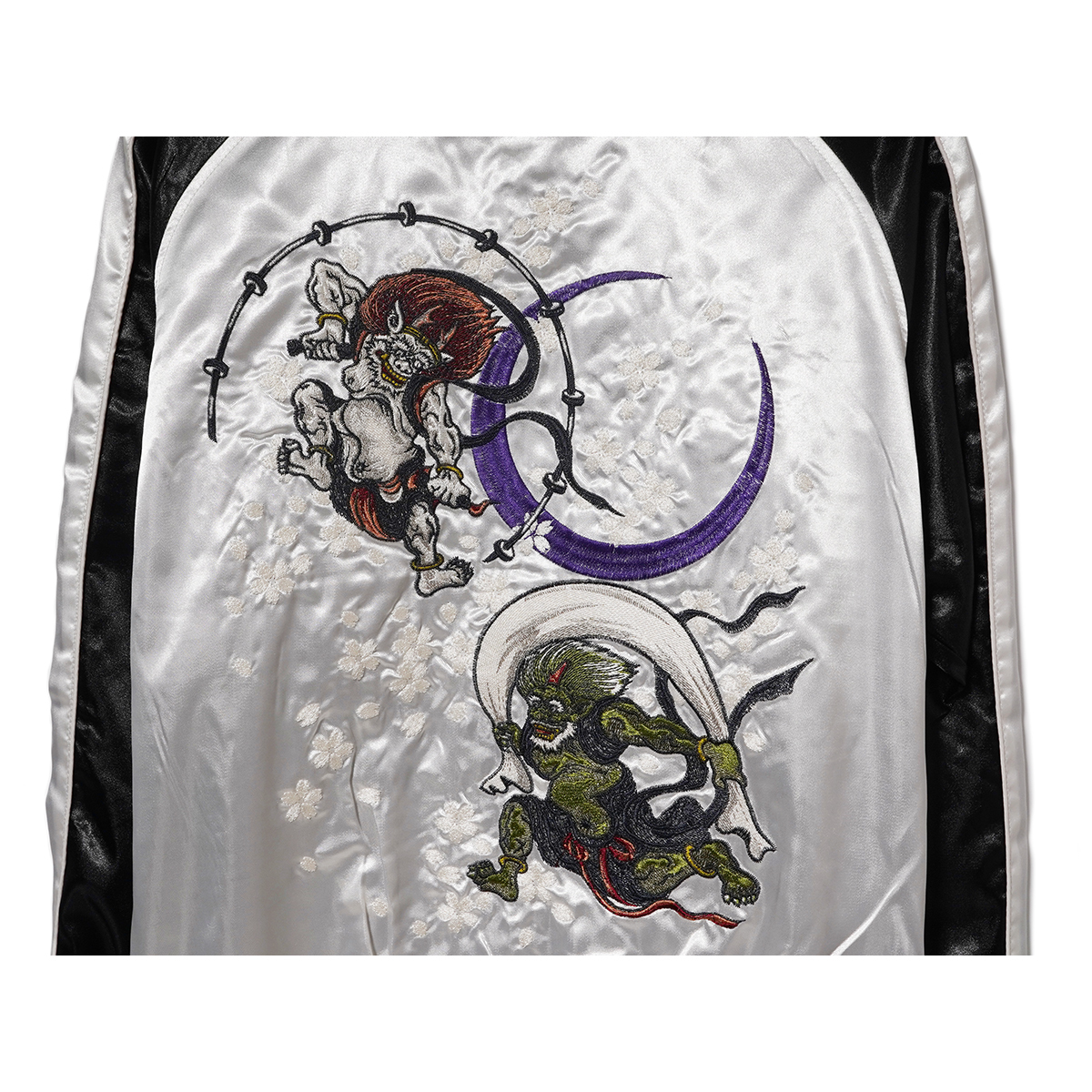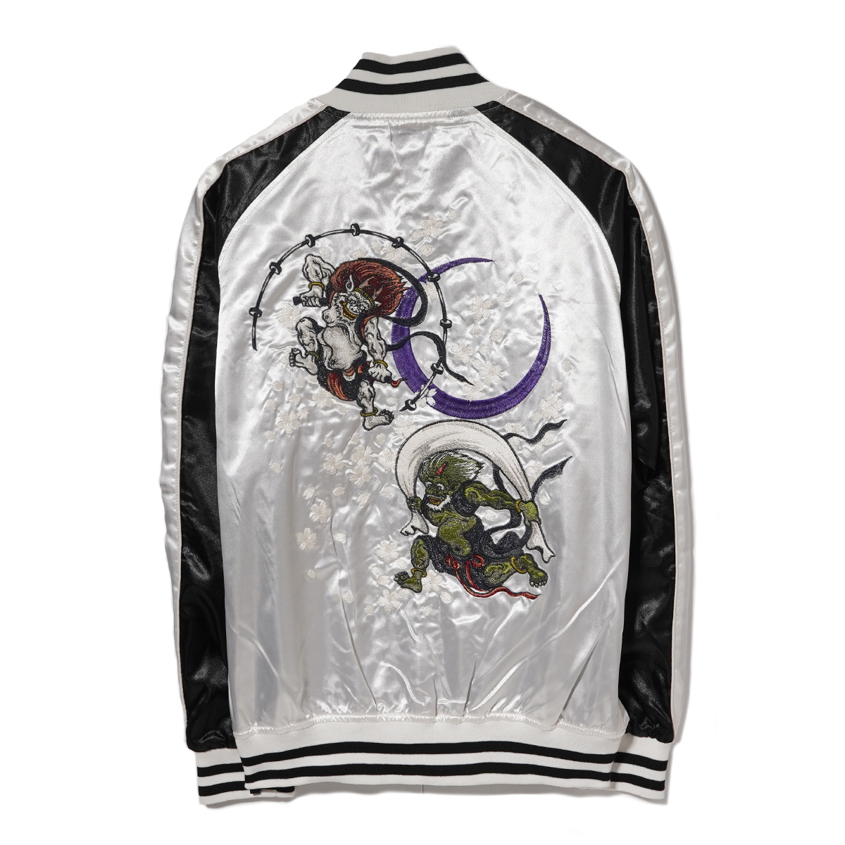 さらりと羽織れるストリート定番スカジャン。 程よい厚さとサラッとした高級感のあるサテン生地、 フロントとバックに施された丁寧な刺繍使いがポイントで、アメカジでは定番のスカジャンを現代っぽくタイトなサイズ感に。 ボディはカラー配色切り替えで仕上げた大人っぽさのあるデザインなど凝ったディティール。 これからの時期に最適、ライトアウターとして活躍してくれる1着。 【カラー◆Color】 風雷神 / SILVER 【サイズ◆Size】 5L (4XL) 【寸法◆Size】 3L size : 身幅61cm 肩幅(ラグランにより数値なし) 着丈69cm 裄丈89cm (2XL,XXL) 4L size : 身幅63cm 肩幅(ラグランにより数値なし) 着丈71cm 裄丈91cm (3XL) 5L size : 身幅65cm 肩幅(ラグランにより数値なし) 着丈73cm 裄丈93cm (4XL) 【素材◆Material】 ポリエステル 100% ※現物に近いカラーに撮影しておりますがモニターカラー設定、または印象によりカラー誤差があることをご理解よろしくお願い致します。 | ||