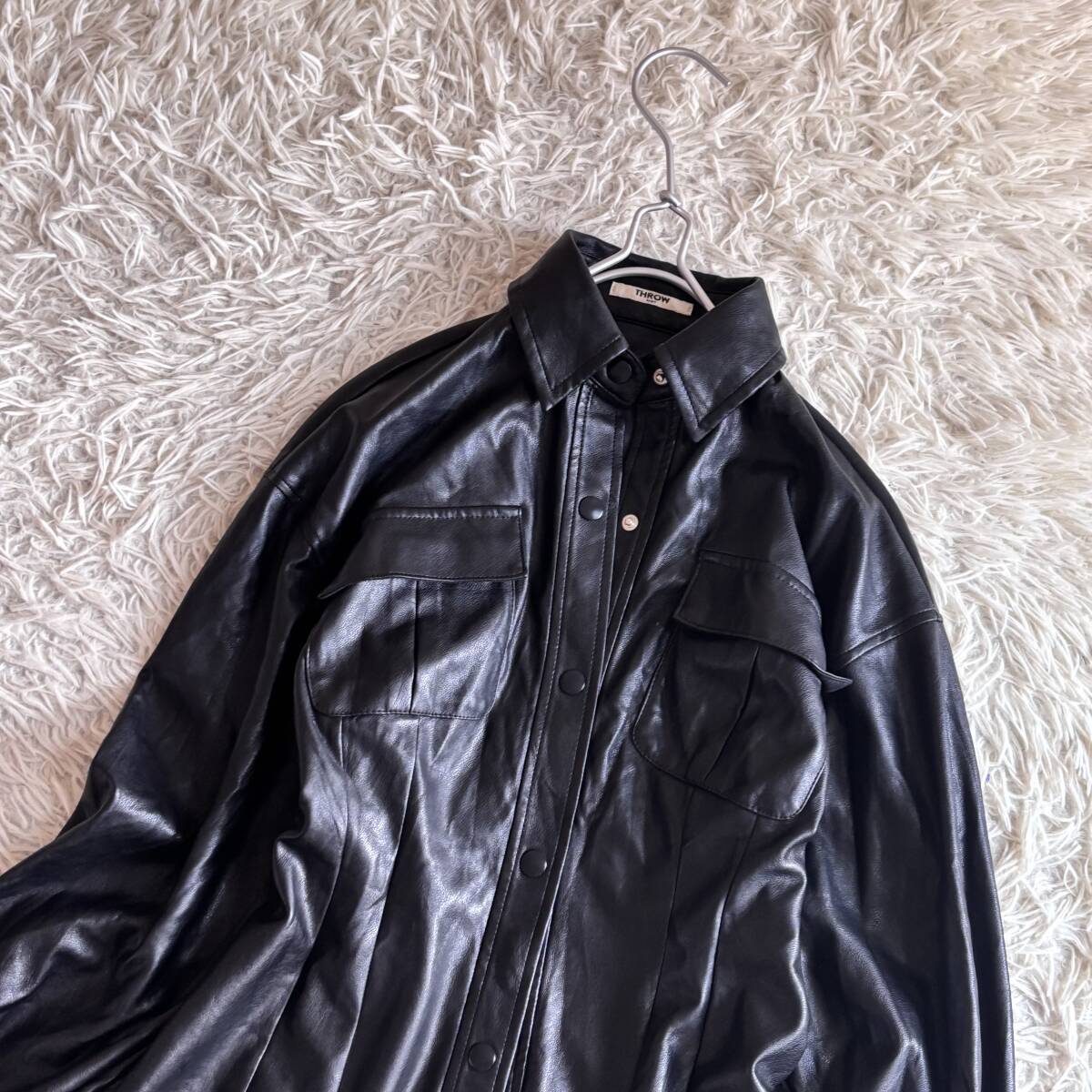 送料360円です SLY THROW ストレッチフェイクレザーシャツです。