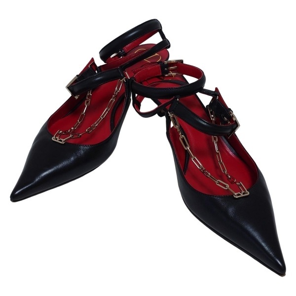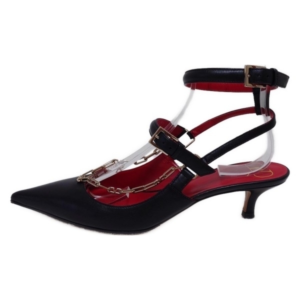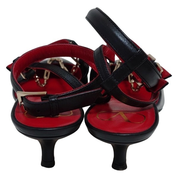 バレンチノガラバーニ VALENTINOGARAVANI サンダル 37 1/2 - レザー 黒 レディース チェーン/アウトソール張替済 靴
