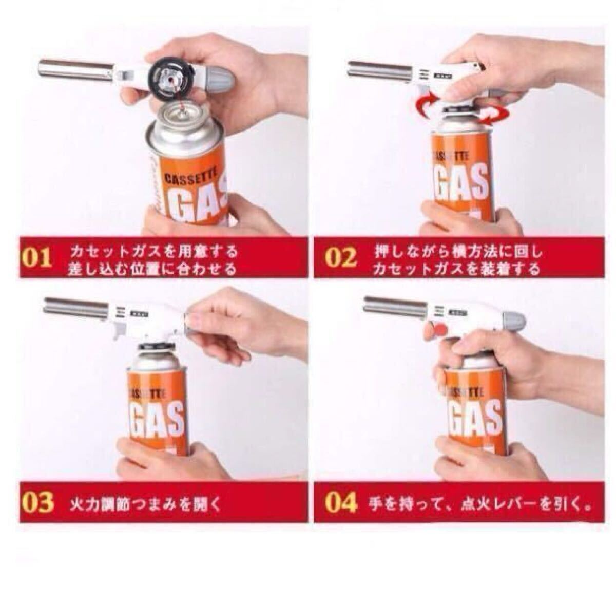ボンベをセットしてカチッとすると点火します。女性にも安心にご使用いただけます。