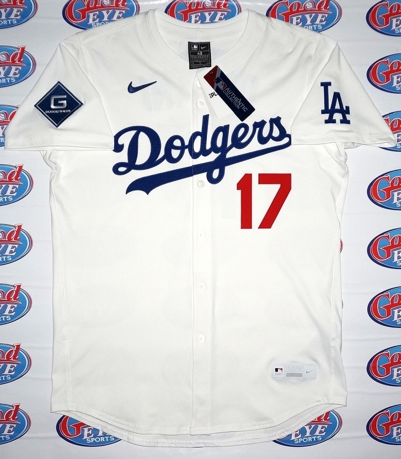 注意:ヤフオクやメルカリで出回っているスポンサーパッチ付きの偽ドジャースユニフォームにご注意ください。2025年のオーセンティックモデルのユニフォームの前に付いているオーセンティックタグは白色です。オーセンティックのユニフォームのサイズは必ず数字(例: サイズ48)で表示されております!