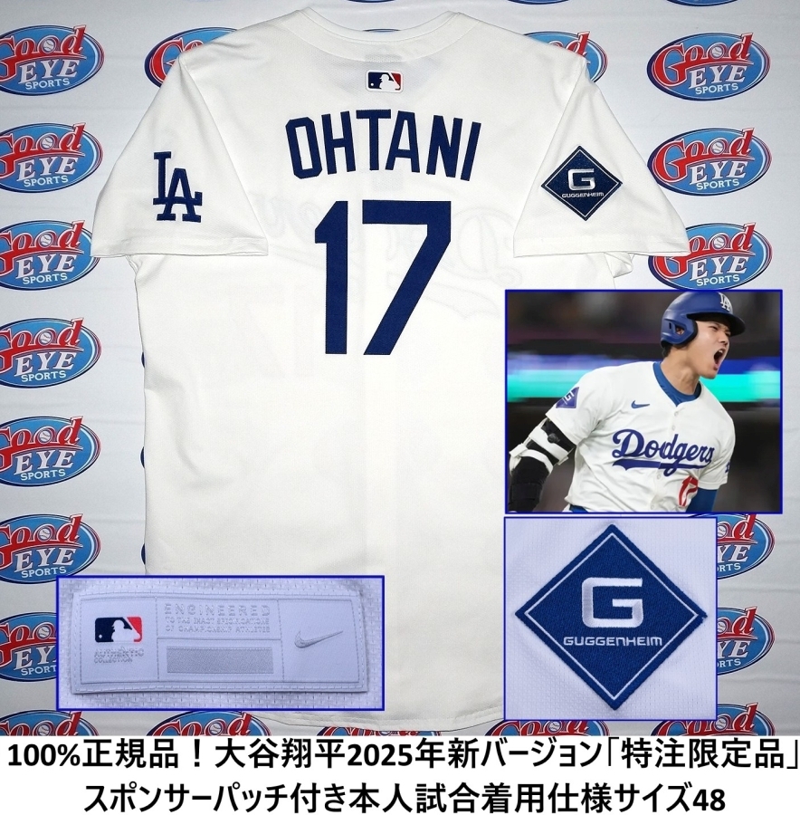 『大谷翔平選手が試合で着用するのと同じサイズ48の「GUGGENHEIM」(グッゲンハイム)スポンサーパッチ付き2025年のNIKE ELITE PLAYERの新バージョンのドジャースオーセンティックホームユニフォーム(ON-FIELD』です!ユニフォームは新品・タグ付きの100%本物の正規品ですのでご安心ください!パッチもすべて縫ってあります!