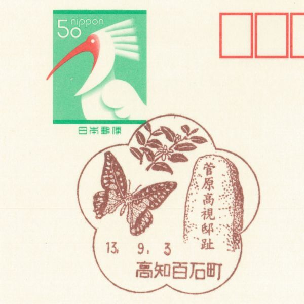 風景印☆初日☆高知・高知百石町・H13.9.3・ウメの花の枠・ミカドアガハ