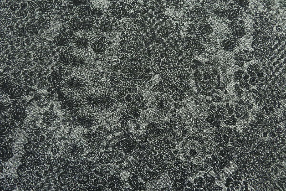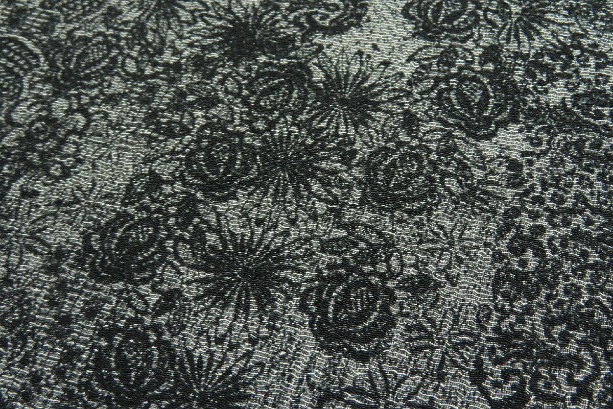 上品な光沢があるちりめん織りで、グレー×ブラックの洋風なお花柄プリントになります。