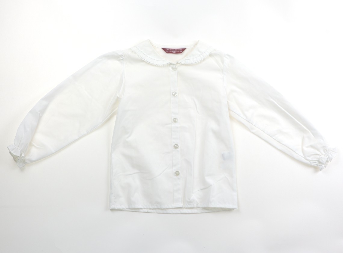 ポリエステルコットンシャツ。少し繊維付着があります。特に目立つ汚れはなくまだお使い頂けそうです。