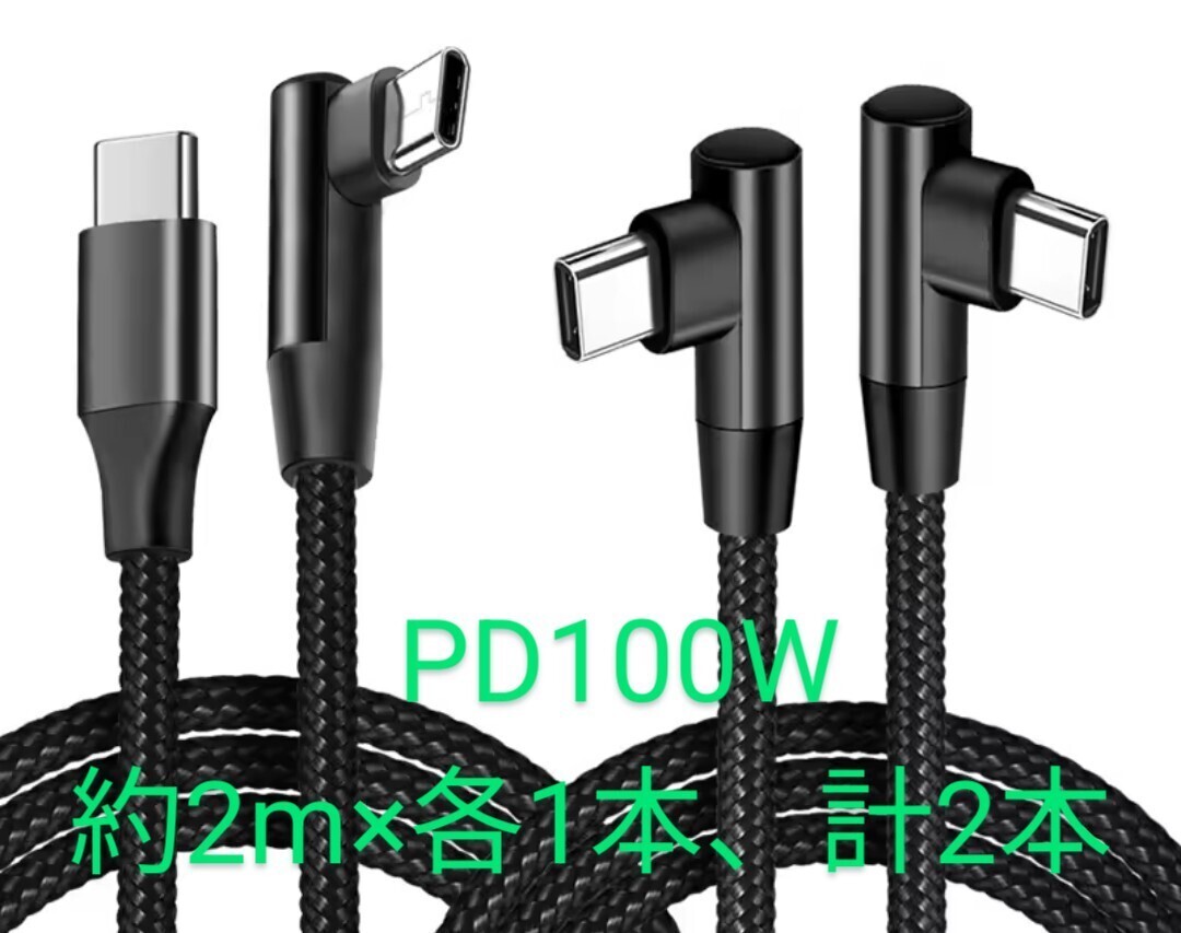 PD 100W L型−L型 L型−I型USB Type-C 充電ケーブルを出品します。
