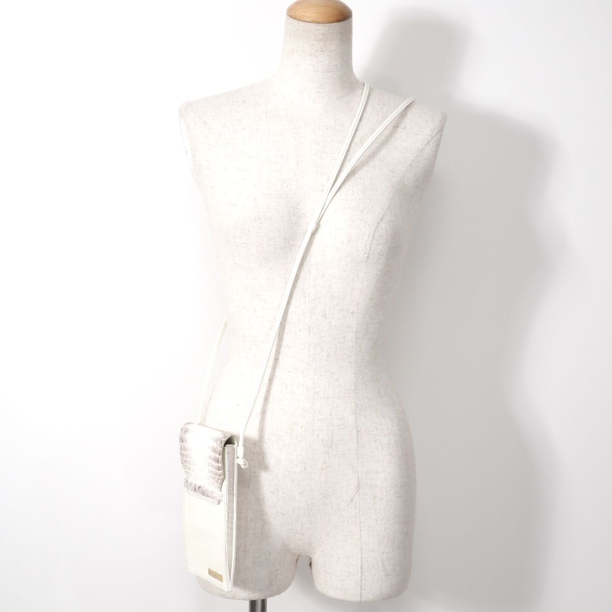 商品名 | 【良品】ゼルパリ ZELE PARIS クロコダイル切替 レザー スマホケース ショルダーバッグ ホワイト 正規品 5-OI004 |