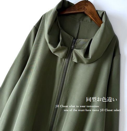 春・晩夏/初秋ロングシーズン大活用頂けるジップアップジャケット。季節の変わり目のマストアイテム。様々なスタイルにマッチするシンプルライン。さっと羽織れて撥水性もあり、普段使いはもちろんレジャーや旅行にも最適。薄手でしっとり滑らかな手触り。コンパクトに持ち運びも◎お洒落なBIGカラーデザイン。気になる体型もすっぽりカバー出来ます。