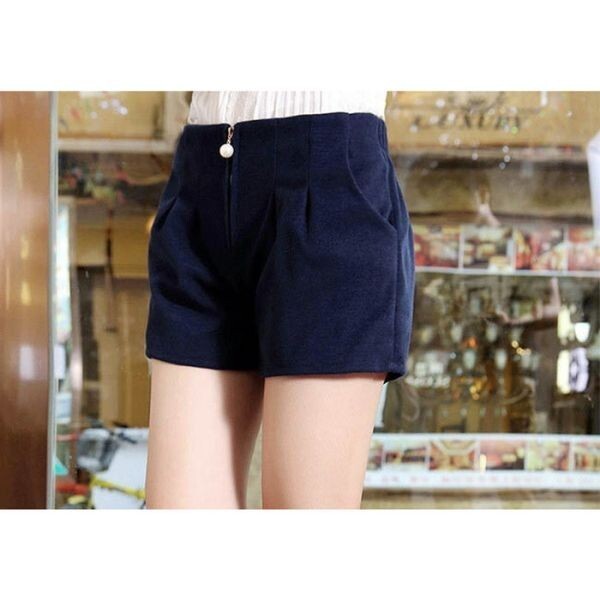 真珠付き ファスナー ファスナー付き 冬素材 美脚ショートパンツ フランネル 厚手 秋冬ショーパン 秋冬 紺色 青 ブルーショーパン