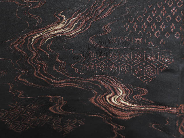 リサイクル商品のため、表所々薄汚れがございますがご着用いただけると存じます。 紐にしみがございます。 地色は 黒 です。 1枚目の画像が近いお色かと思われます。 素材は正絹です。 |