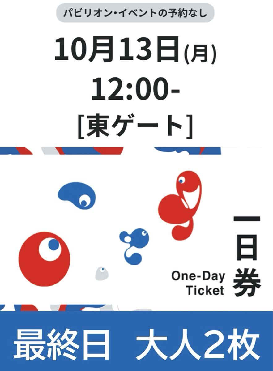 「EXPO2025 大阪・関西万博入場チケット 一日券(大人)」のチケットID(電子チケット)2名様分です。