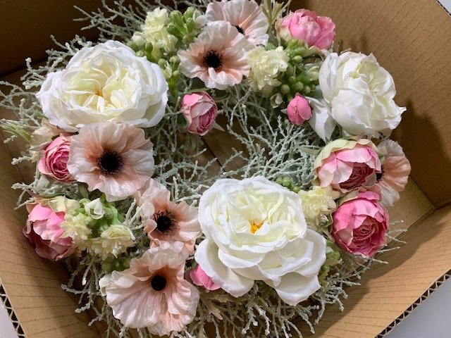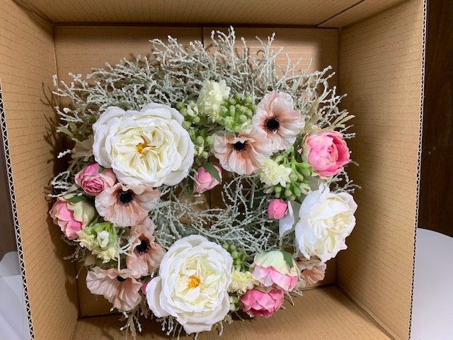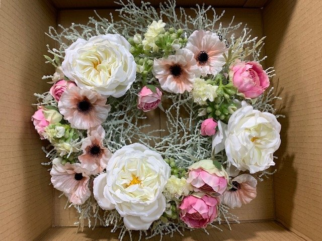 アレンジメントフラワー 造花 リース 優しいピンク系お花 お洒落なデザイン 洋風 玄関用 ギフト | |||||