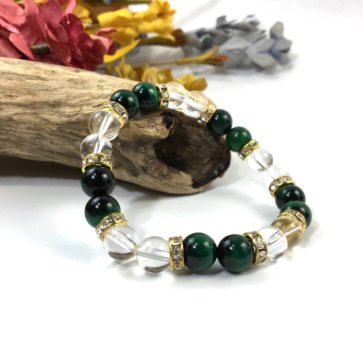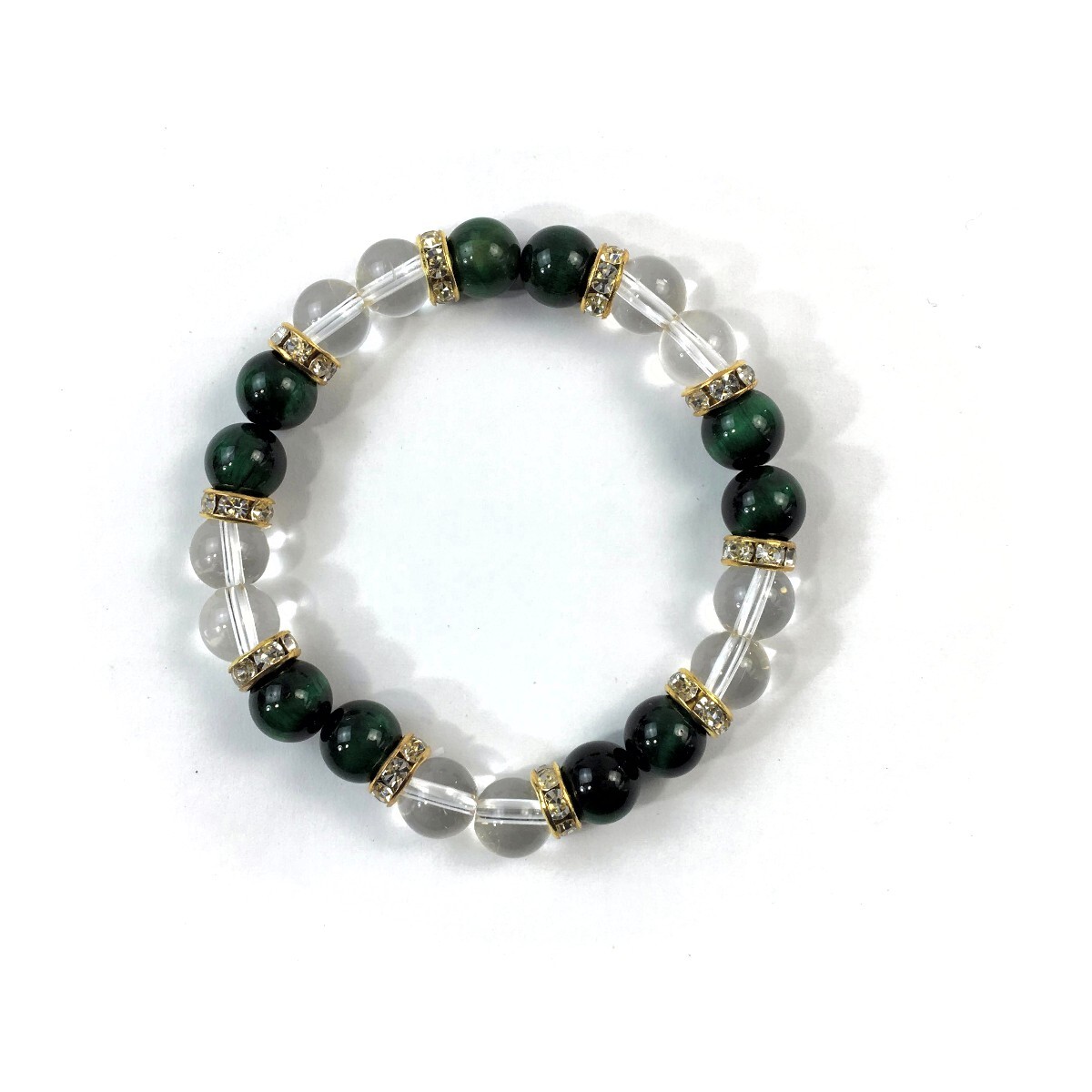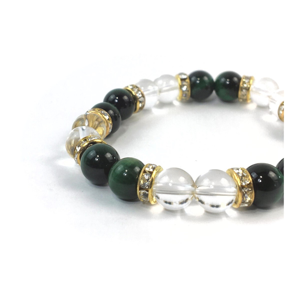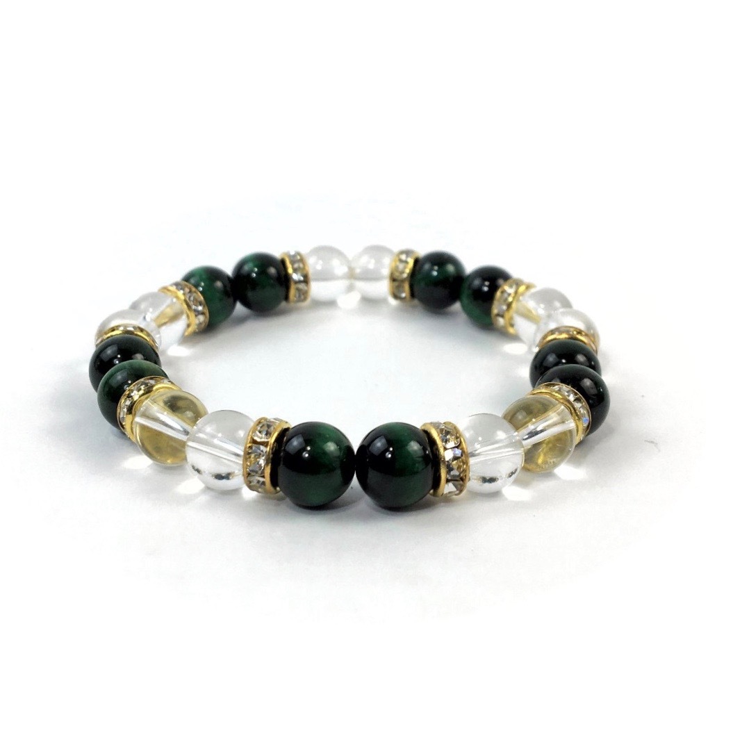 グリーンタイガーアイ&水晶 パワーストーン ブレスレット 天然石ブレス ゴールド 8mm /開運 浄化 4月 誕生石 クリスタル レディース 通販