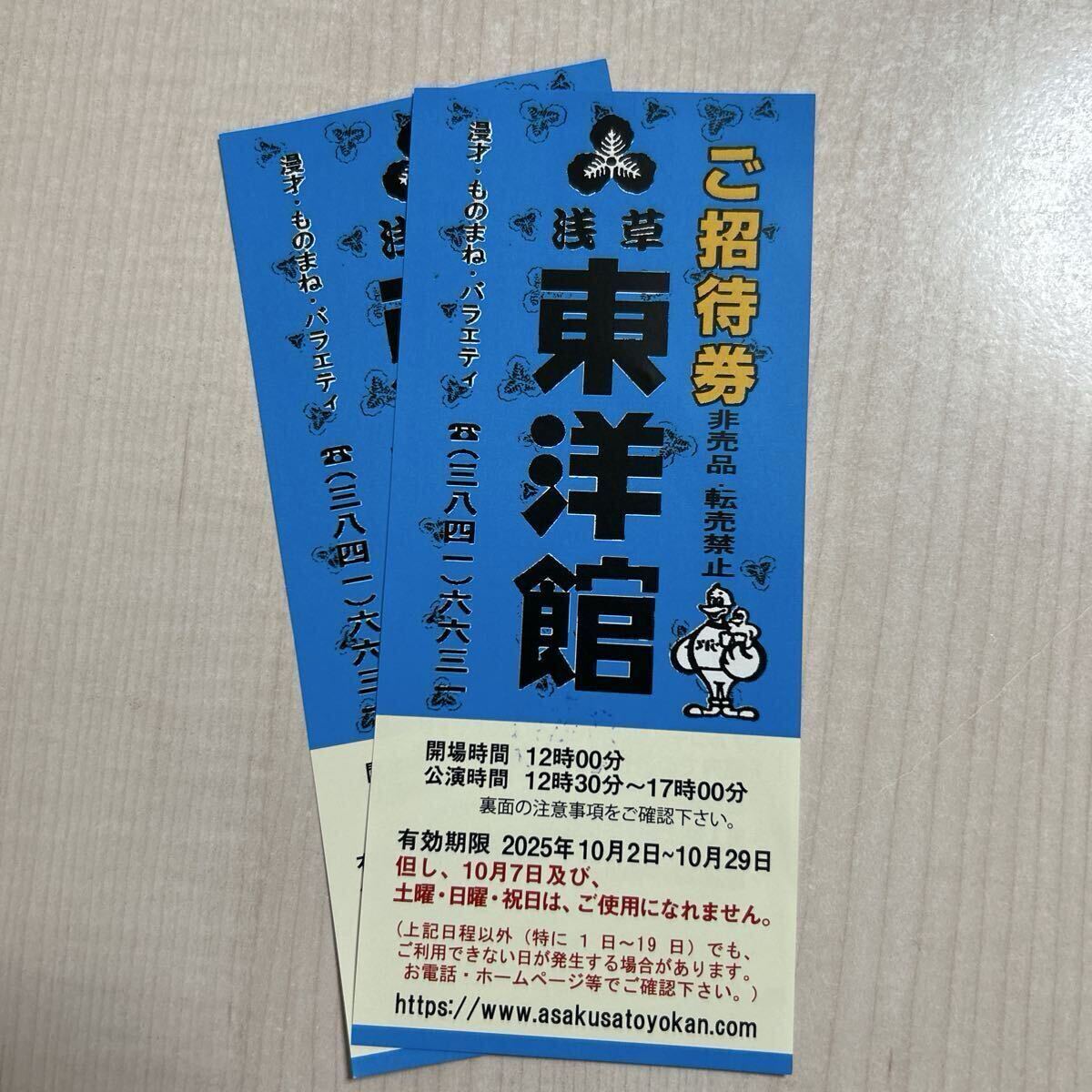 浅草東洋館 10月ご招待券 2枚の出品です。
