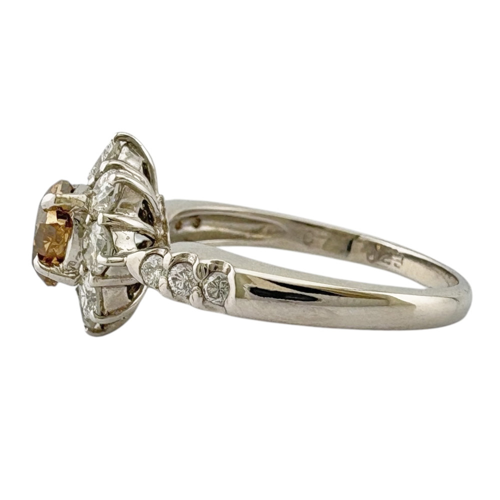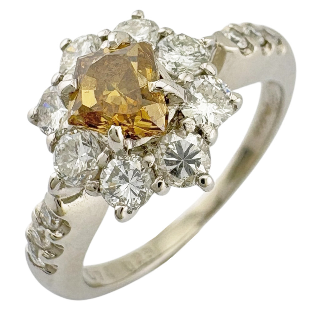 希少なファンシーカラーのブラウンダイヤモンドを豪華に取り巻いた、華やかなデザインリングです。Pt900の重厚な輝きと、眩いダイヤモンドの煌めきが、手元を格調高く演出します。 1点限りの商品ですのでお早めにどうぞ。 ※画像上と実物では多少色具合が異なって見える場合もございます。※尚、本品は中古品の為、気にならない程度の小キズがある場合がございます。 当ストアの商品は他のショッピングサイトや全国のリサイクルキングでの同時販売を行っている為、商品欠品によるご落札のキャンセルをさせて頂く場合がございますので予めご了承下さい。 |