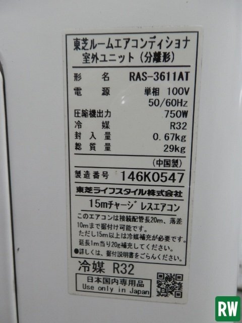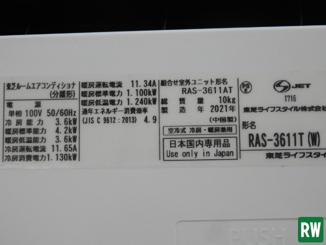 | 型式 | 内機:RAS-3611T(W) 外機:RAS-3611AT | |||||||||