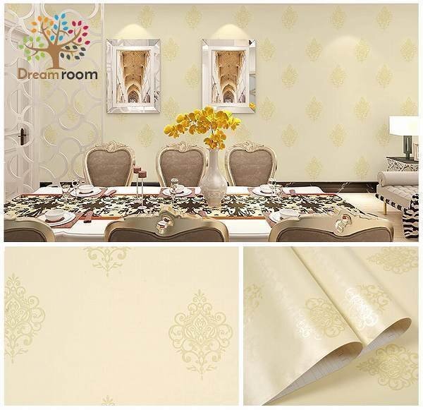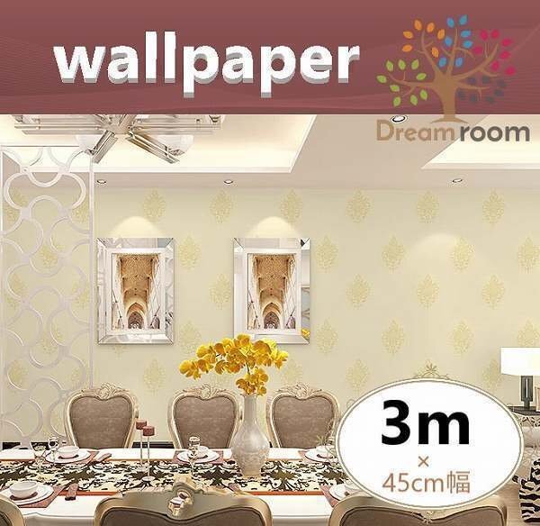 【 3m 】 ダマスク柄 白×ゴールド 壁紙 アンティーク ウォールペーパー北欧風 インテリア リビング はがせる シール DIY 糊付き