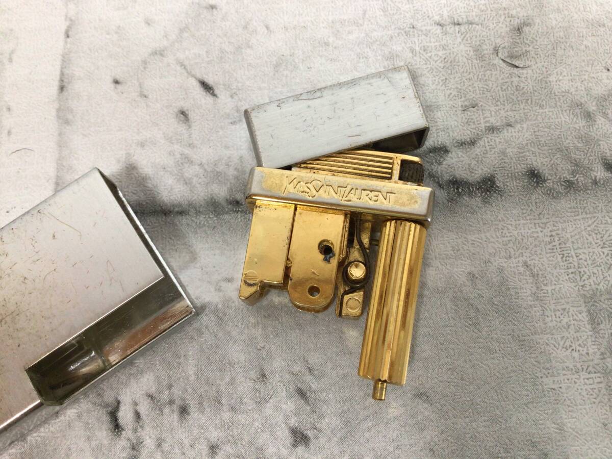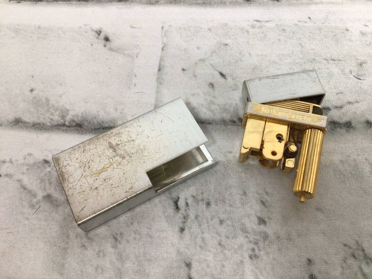 W403 保管品 YVES SAINT LAURENT/イヴ・サンローラン ガスライター シルバー ゴールド 喫煙具 ロゴ入り ジャンク 現状品