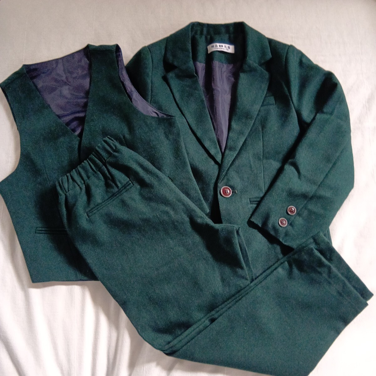 4点セット ジャケット、ベスト、パンツ、蝶ネクタイ 白いシャツは付きません。パンツのウェストはゴム付き。