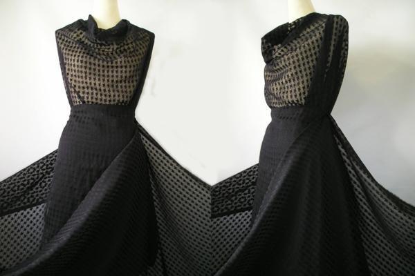 写真について | 1枚目はこの生地をトルソーにドレス風に掛けてみました 2~3枚目は生地目の拡大写真です 4枚目以降は風合いや柄が分かるように撮影 丸巻からご注文メーターをカットいたします |