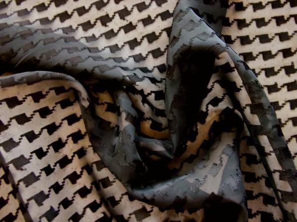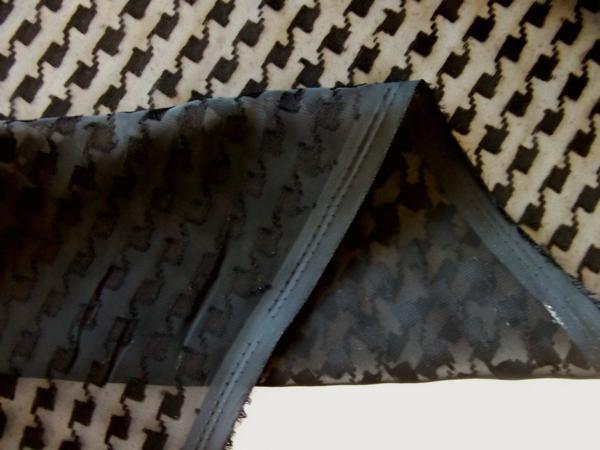 風合い お色 | 風合い:ごく普通のボイルの風合い ストレッチ:ありません 透け感:オパール部分に透け感があります 光沢感:サテン部分に若干の光沢感があります お色:ブラック 柄:千鳥格子柄 モニターの性格上実際の色目と多少異なる場合がございますがご了承ください |