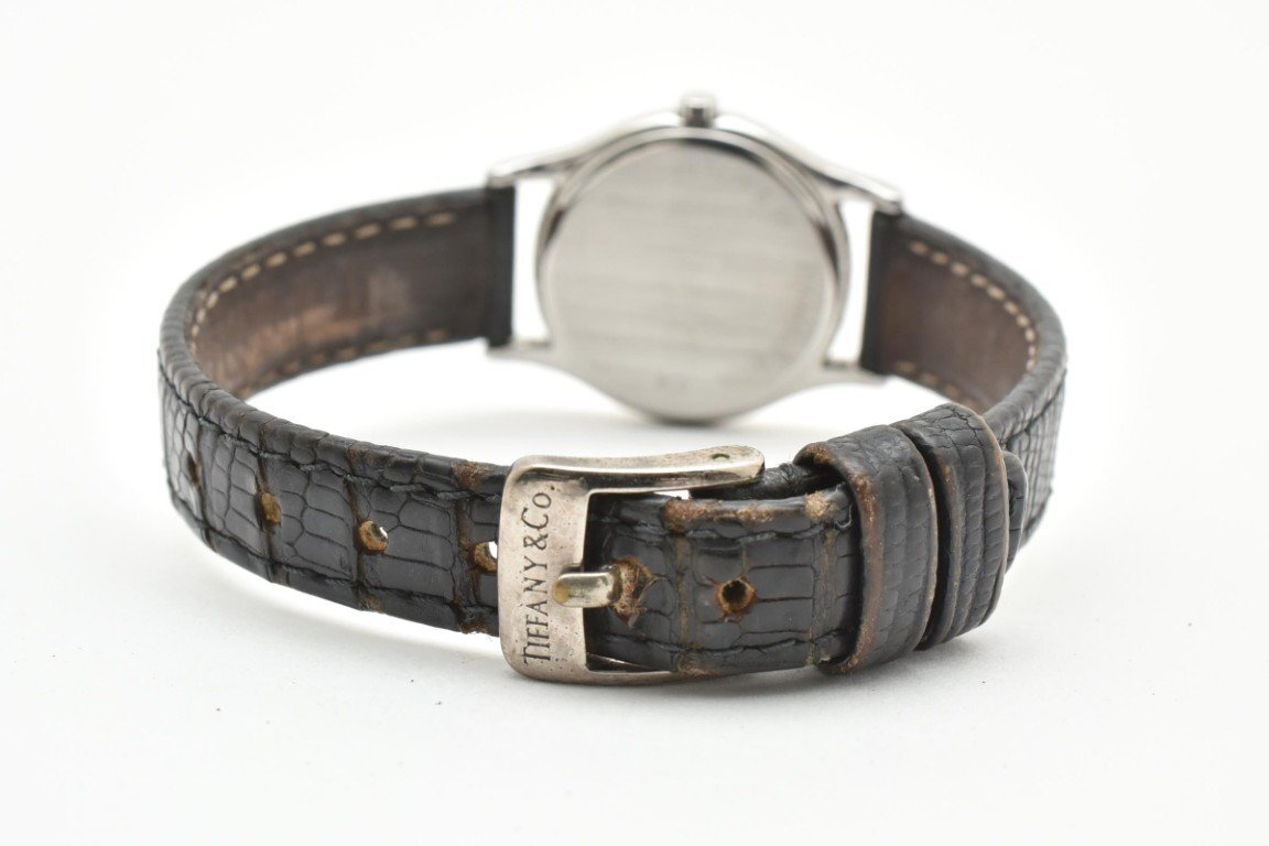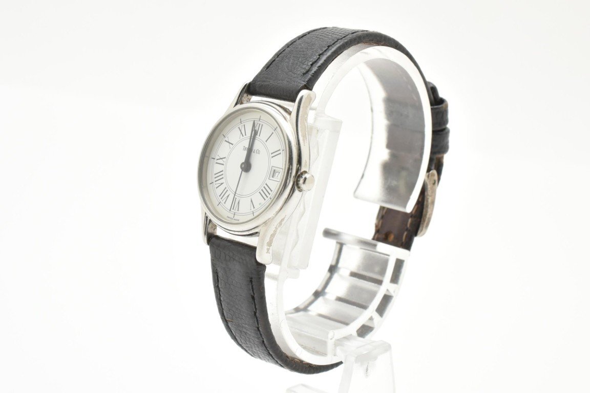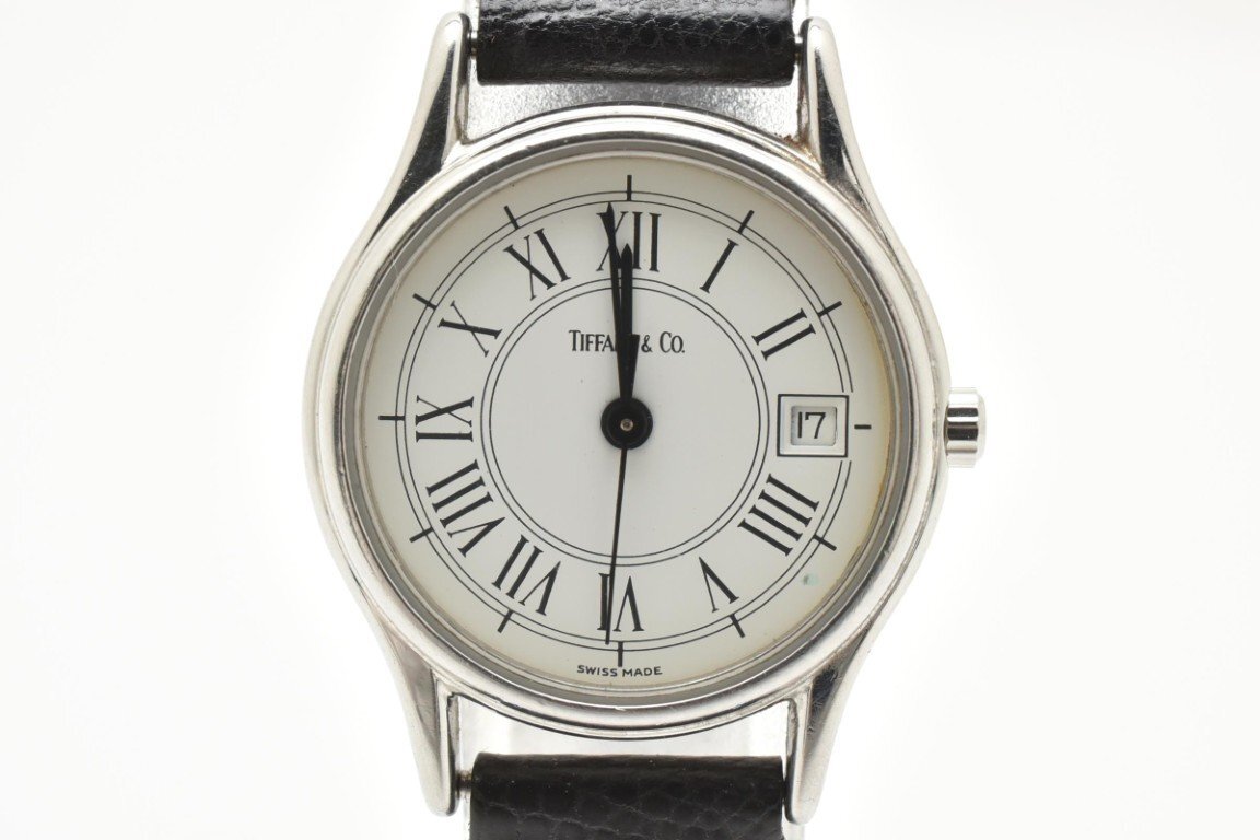 TIFFANY&Co. ティファニーアンドカンパニー レディース デイト 3針 白文字盤 黒ベルト クォーツ式 腕時計