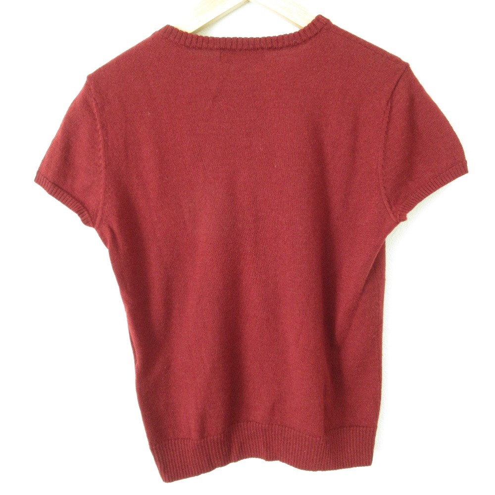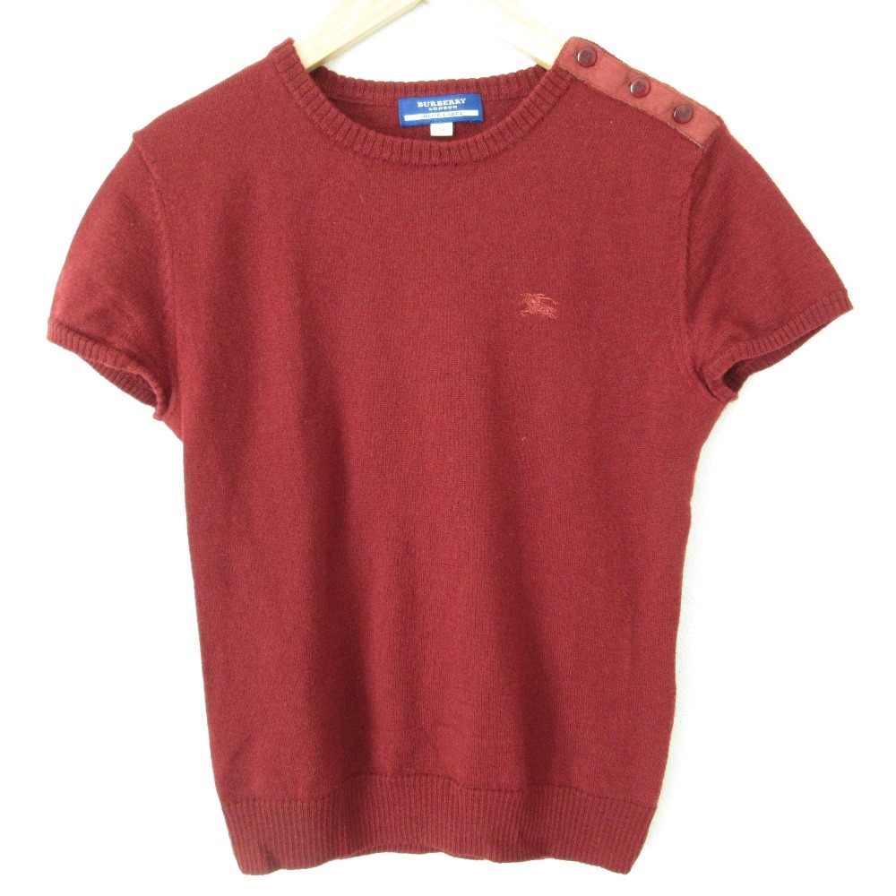商品名:BURBERRY BLUE LABEL バーバリーブルーレーベル ロゴボタン ニット カーディガン 半袖 プルオーバー アンサンブル M レッド