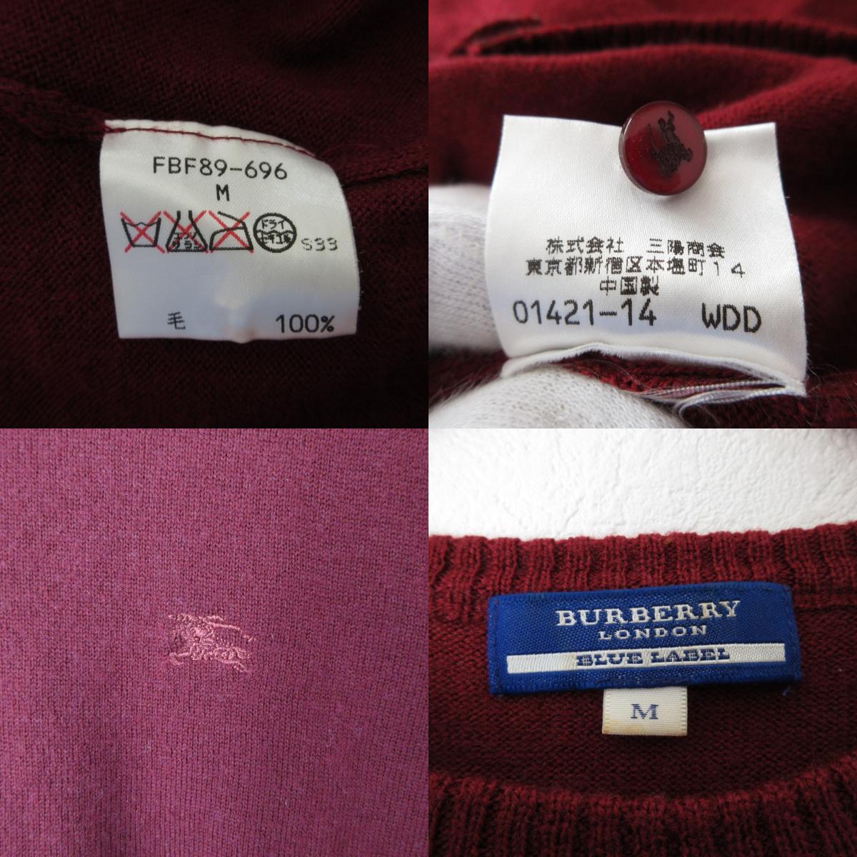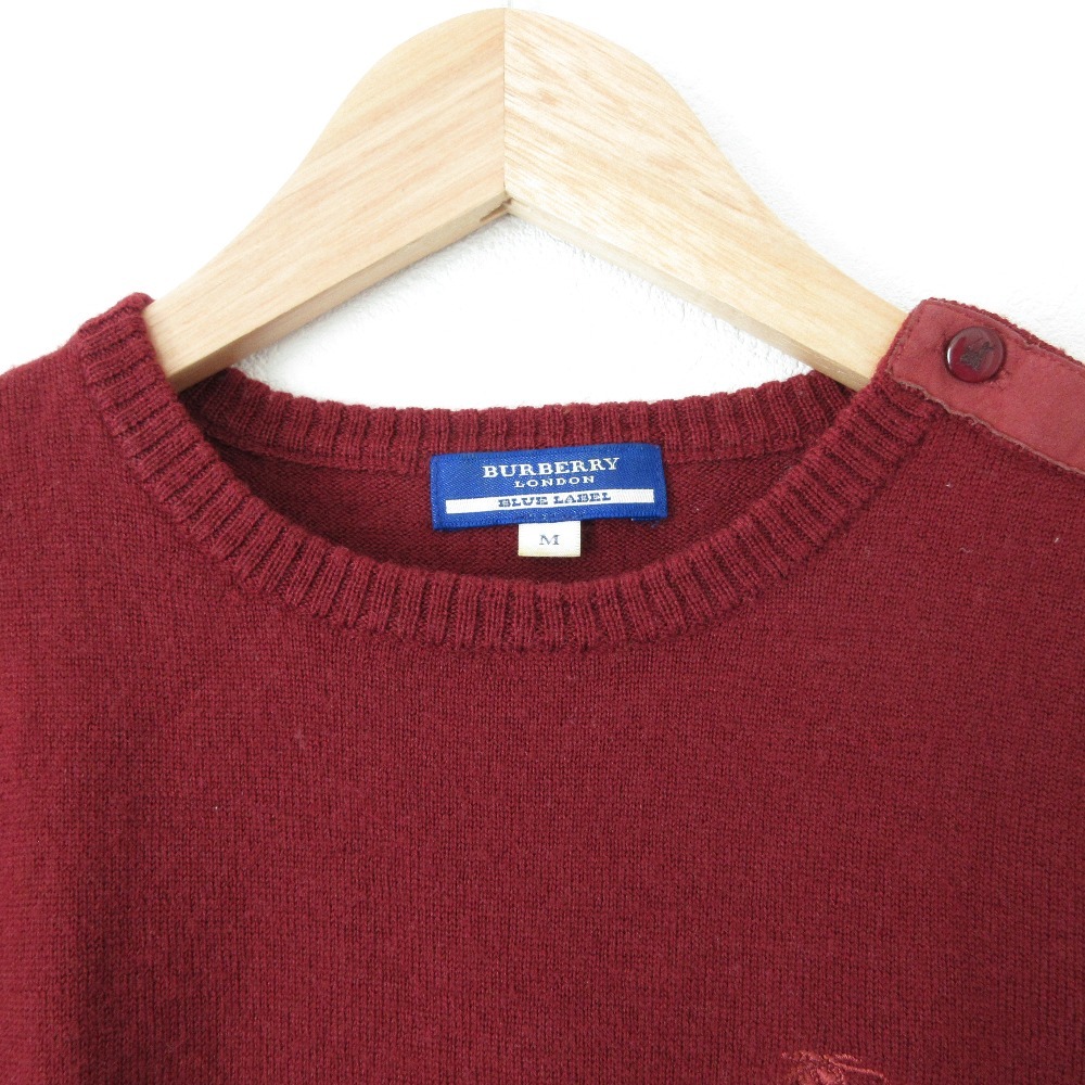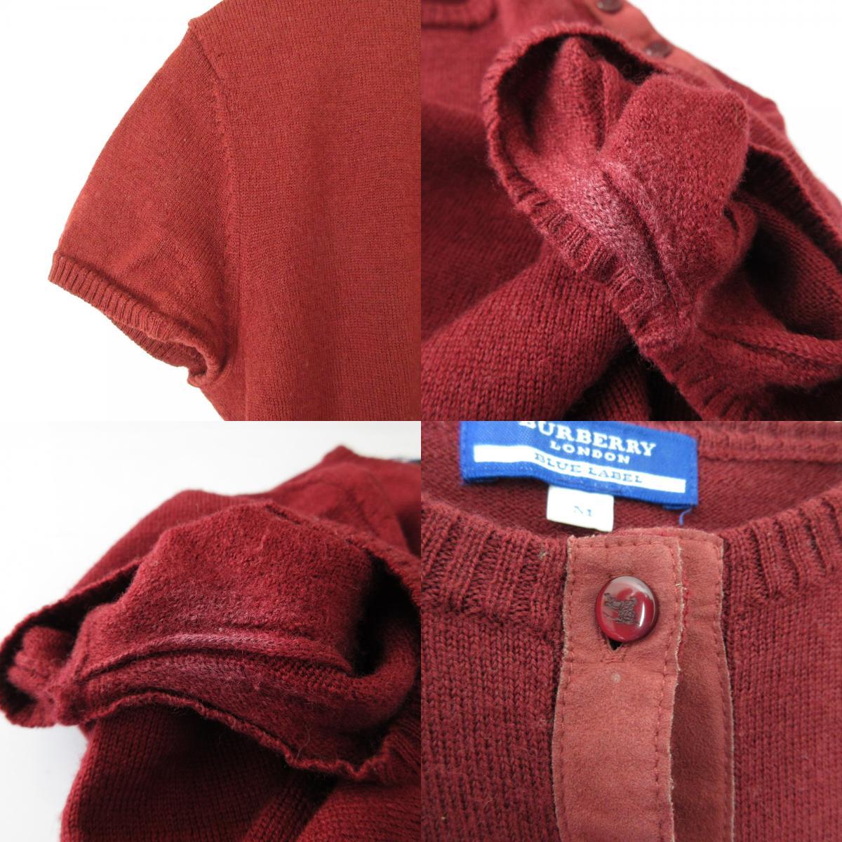 良品 BURBERRY BLUE LABEL バーバリーブルーレーベル ロゴボタン ニット カーディガン 半袖 プルオーバー アンサンブル M レッド