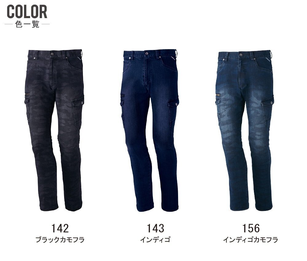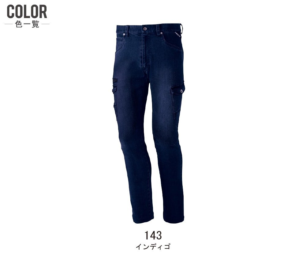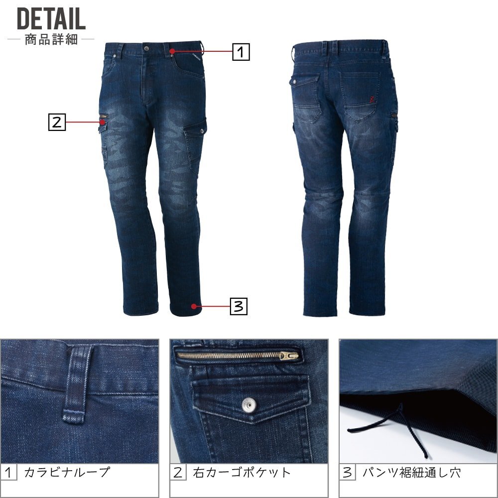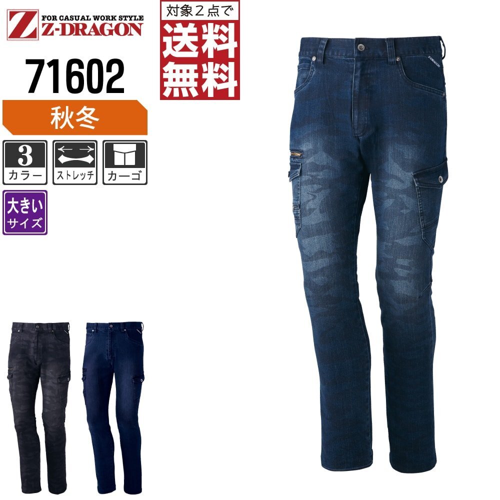 Z-DRAGON ジィードラゴン 秋冬 ストレッチ ノータック カーゴパンツ 伸縮性に優れたデニム素材 71602 色:インディゴ サイズ:91