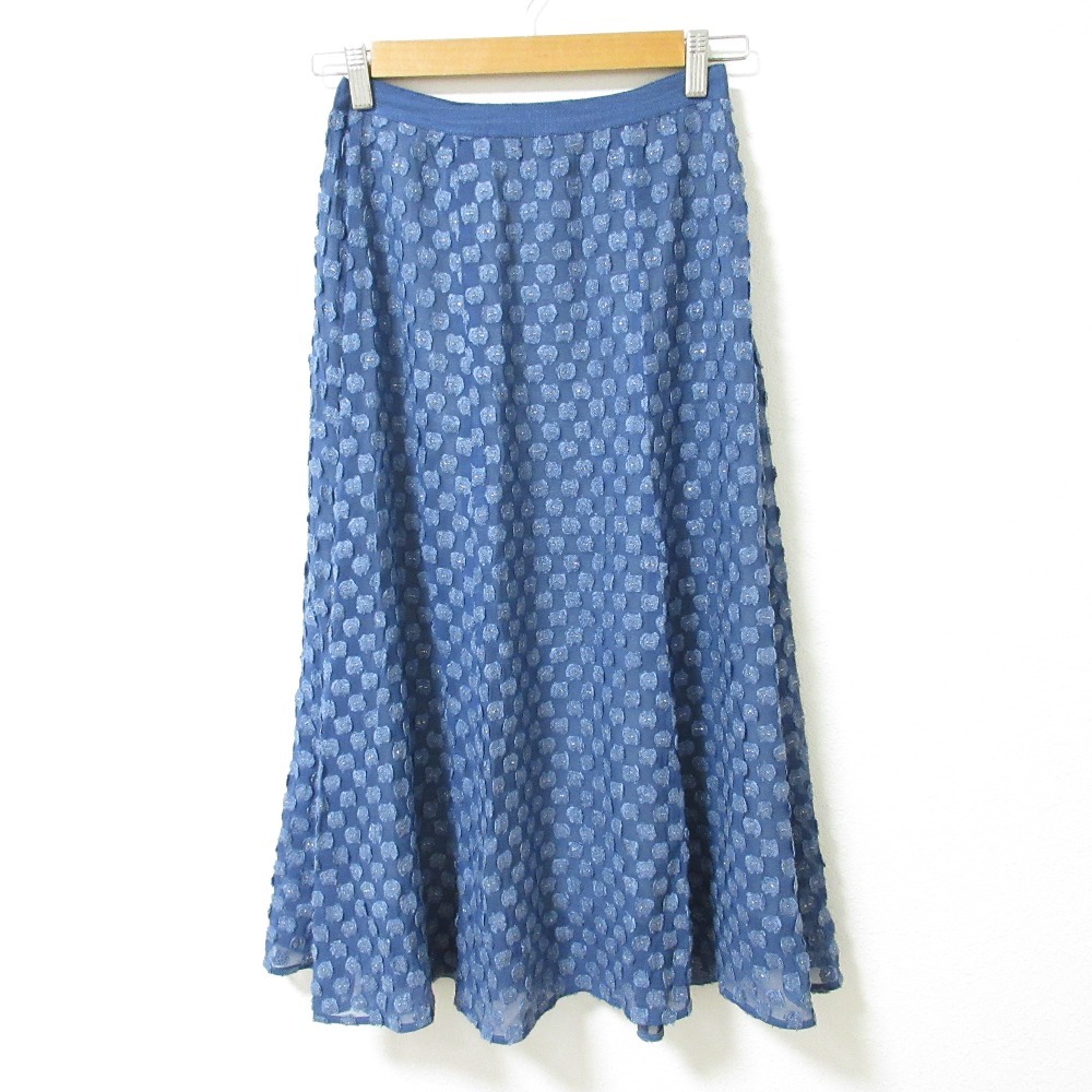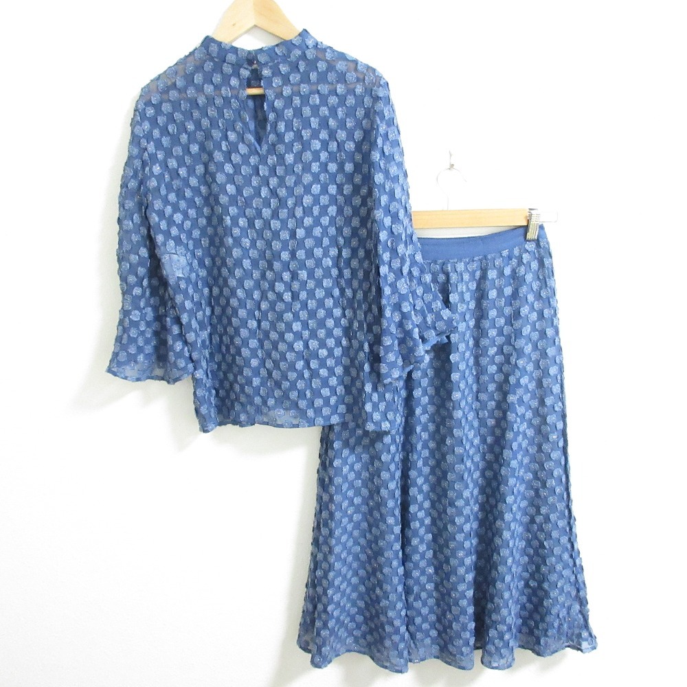 美品 ANAYI アナイ エンブロイダリー シアー ブラウス ロングスカート セットアップ サイズ38 ブルー